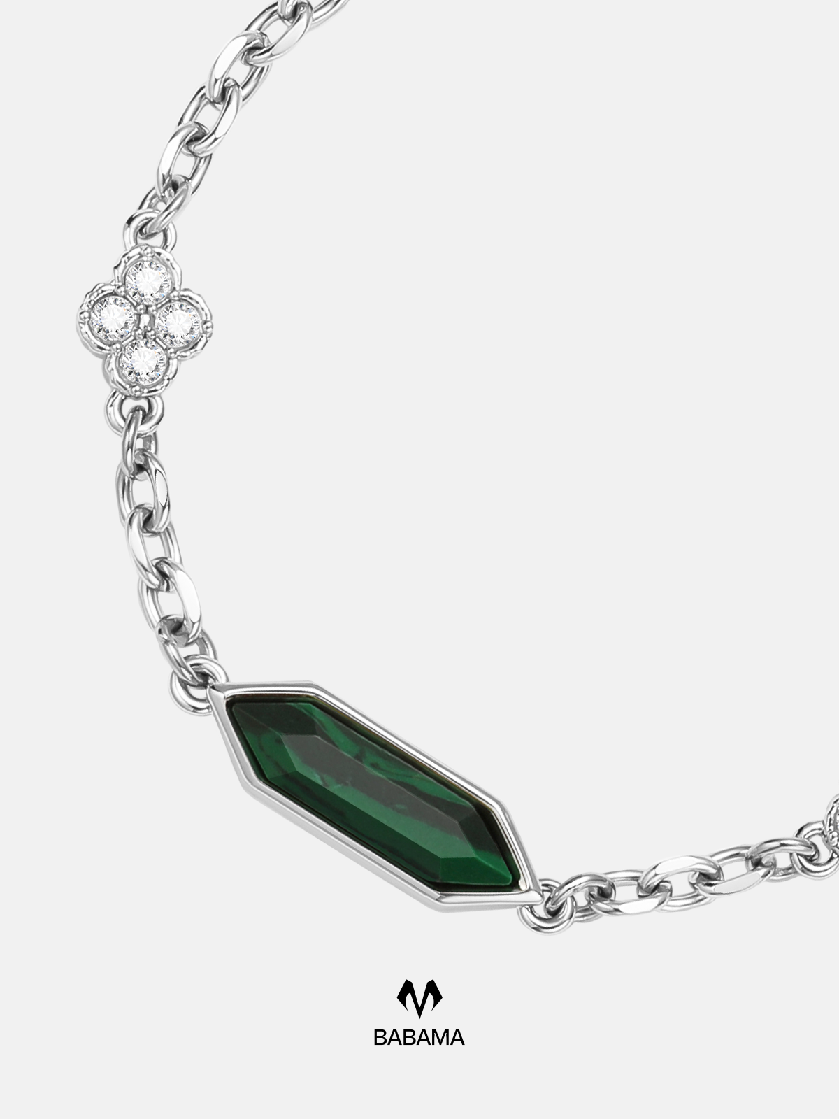 Material: | stainless steel base + copper flower accessories + stainless steel chain + synthetic malachite + zircon |
